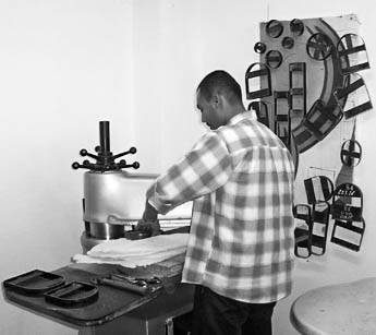 Here, loofah goes through a special electric Hydriolic scissors for shaping loofah forms (Rounded, Palm, Glove, Wallet, Back… etc.), and then loofah becomes ready for the next step.